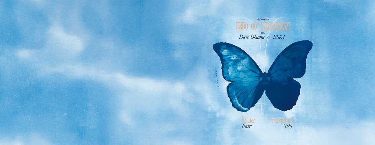 Als Gitarrist und „Geheimwaffe“ (wie Pitchfork ihn einst beschrieb) der englischen Rockband Radiohead ist Ed O’Brien seit Mitte der 1980er-Jahre zu einem Weltstar geworden und hat den Sound des Alternative-Rocks mit seinen atmosphärischen Gitarrenklängen maßgeblich geprägt. Die Karriere der Band wurde mit sechs Grammy Awards, vier Ivor Novello Awards, diversen weiteren Nominierungen sowie der Aufnahme in die Rock & Roll Hall of Fame längst vergoldet und lässt ihren musikalischen Fingerprint kaum in Worte fassen. Seit 2019 widmet sich Ed O’Brien auch eigener Musik und veröffentlichte zunächst unter seinem Pseudonym EOB erste Singles sowie ein Soloalbum. Am 22. Mai 2026 wird Ed O’Briens langersehntes zweites Soloalbum „Blue Morpho“ über Transgressive Records erscheinen und die Solokarriere des Gitarristen weiter schreiben. Im Oktober präsentiert er jenes Album dann live auf Tour. Die An Evening With… Blue Morpho Tour führt ihn hierzulande in den Berliner Admiralspalast sowie in die Hamburger Laeiszhalle.
