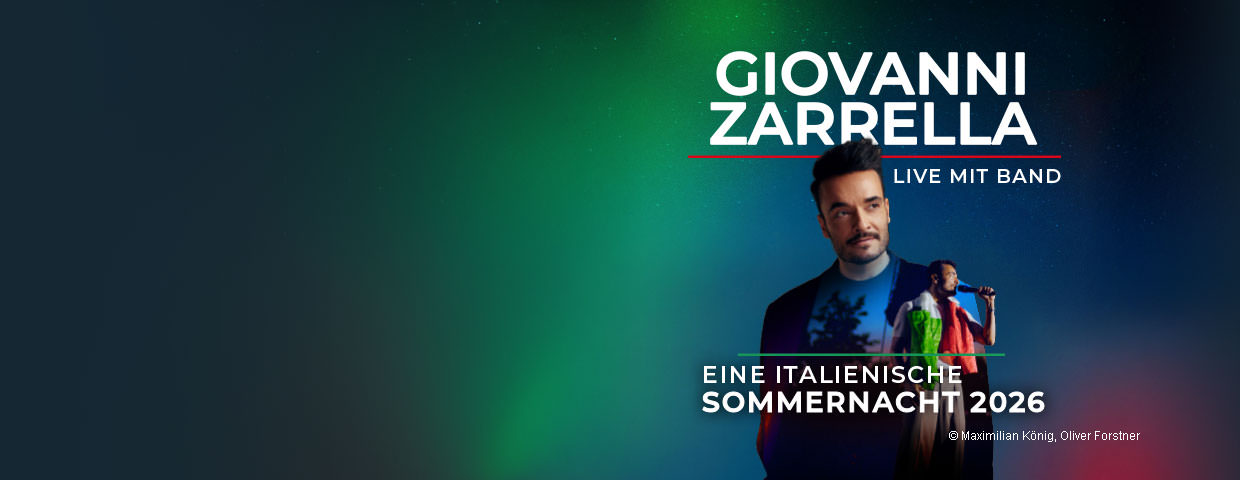 Mit seinem großen Herzen, seinem unwiderstehlichen Charme und seiner überfließenden Lebensfreude bringt er uns das Dolce Vita in unser Leben: Giovanni Zarrella! Mit seinen vielfältigen Talenten und Qualitäten hat sich der deutsch-italienische Sänger, Moderator und Entertainer unwiderruflich in der absoluten Spitzenliga der deutschsprachigen Entertainmentbranche etabliert. Nach dem überwältigenden Erfolg seines Live-Open-Air-Programms „Eine italienische Sommernacht“ in den letzten Jahren kommt der charismatische Publikumsliebling mit seiner grandiosen Live-Band auch 2026 wieder zurück auf die deutschen Bühnen – im Gepäck auch dieses Mal die beliebten deutschen Neuinterpretationen italienischer Klassiker, zahlreiche deutsche Hits auf Italienisch, aber auch die großartigen Songs seines aktuellen Top-3-Albums UNIVERSO. Der nächste Sommer verspricht noch mehr Unterhaltung, Esprit und italienisches Lebensgefühl – mit einer Show, die moderner, mitreißender und größer ist als je zuvor.