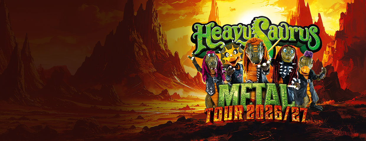 Vom Kinderzimmer bis aufs legendäre Wacken Open Air, vom Familienausflug bis zur Festivalbühne, von kleinen Clubs bis zu großen Hallen – HEAVYSAURUS spielen echten Metal für Groß und Klein. Vier Dinosaurier und ein Drache rocken die Bühnen mit einer Show, die Kinder wie Erwachsene gleichermaßen die „Pommesgabel“ recken lässt. Am 30.01.2026 erscheint das neue Album „METAL“ mit 15 brandneuen Songs. Anschließend gehen die fünf grüngeschuppten Helden mit der METAL Tour 2026/27 auf große Konzertreise, mit neuen Songs, neuer Show und altbewährter Dino-Power!